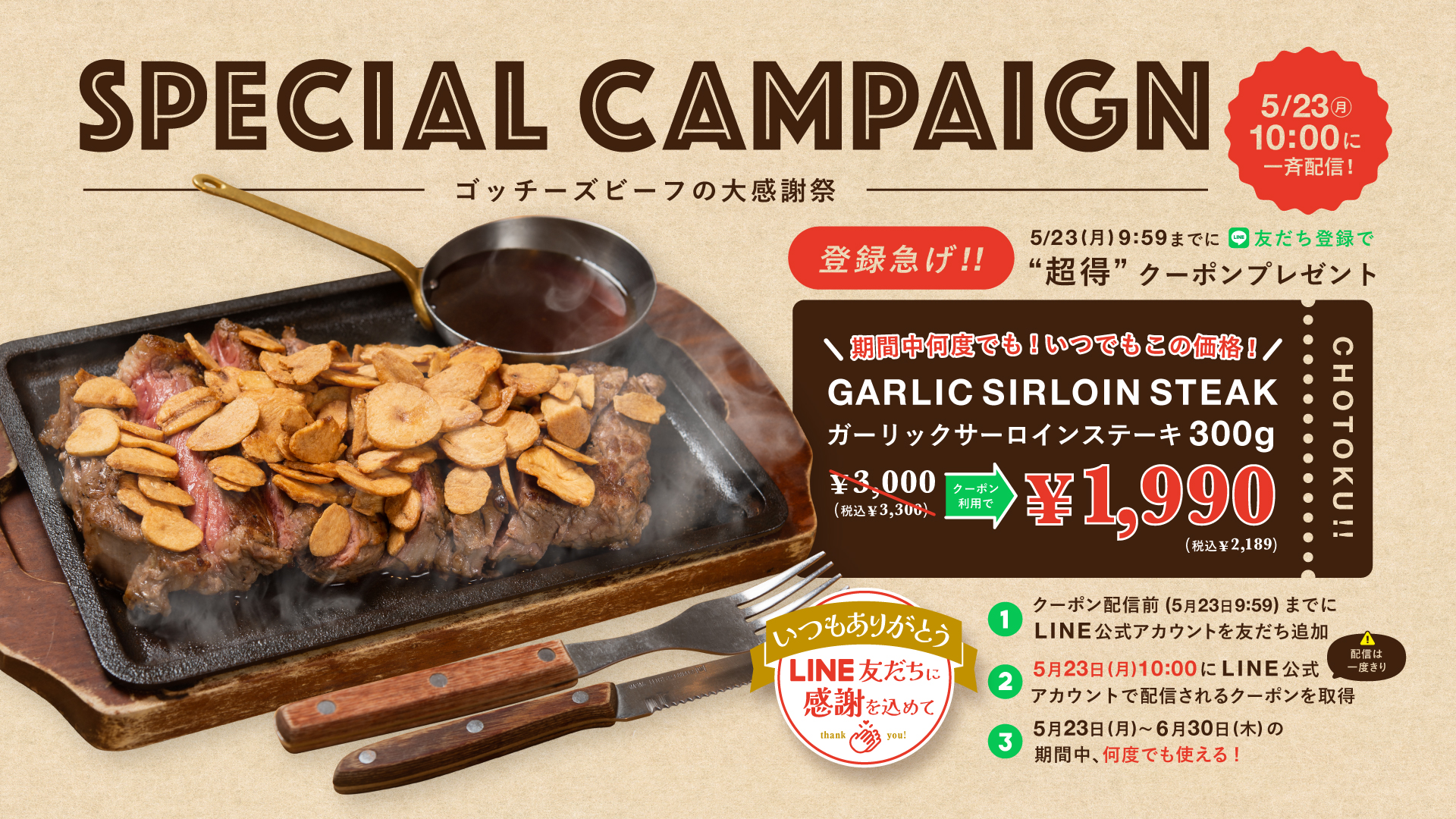 クーポン配信は5月23日(月)10:00の一度きり!