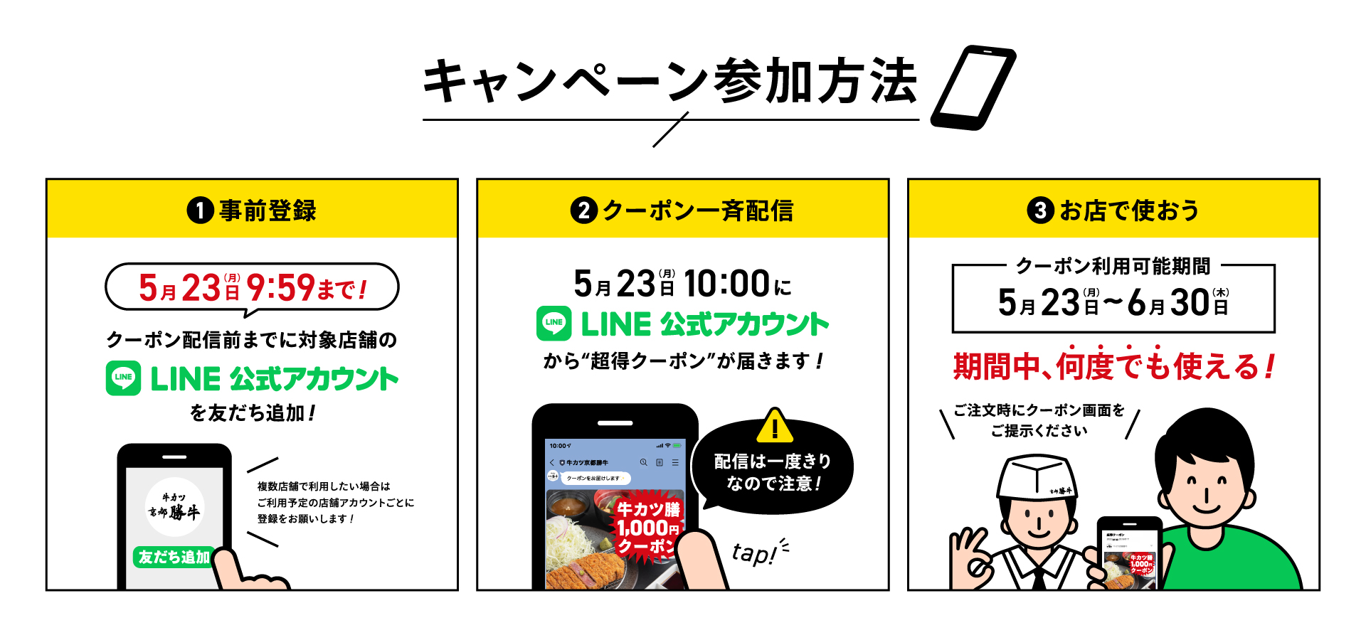 ①クーポン配信前〔5月23日(月)9:59〕までに対象店舗のLINE公式アカウントに友だち登録